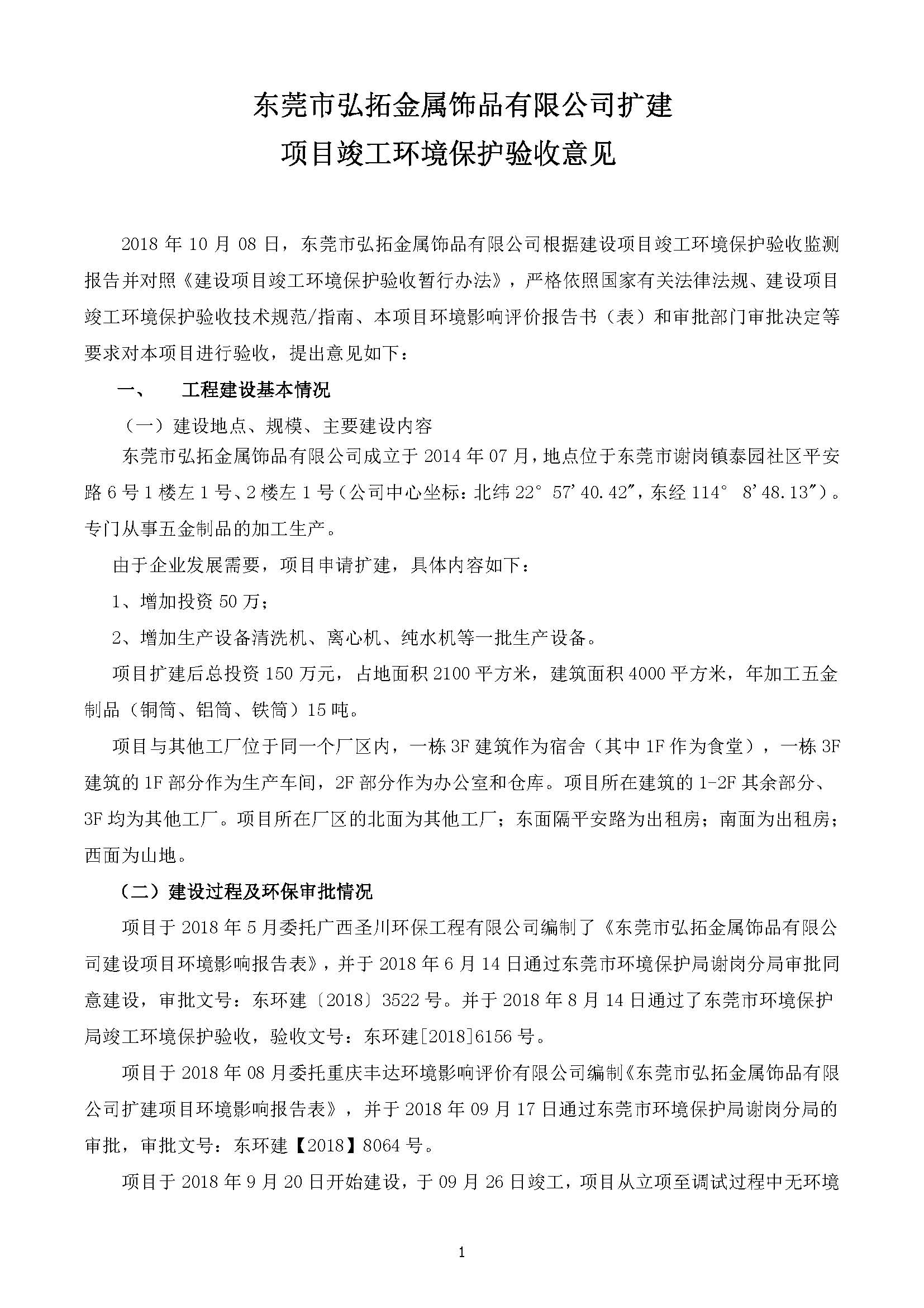 项目名称:东莞市弘拓金属饰品有限公司扩建