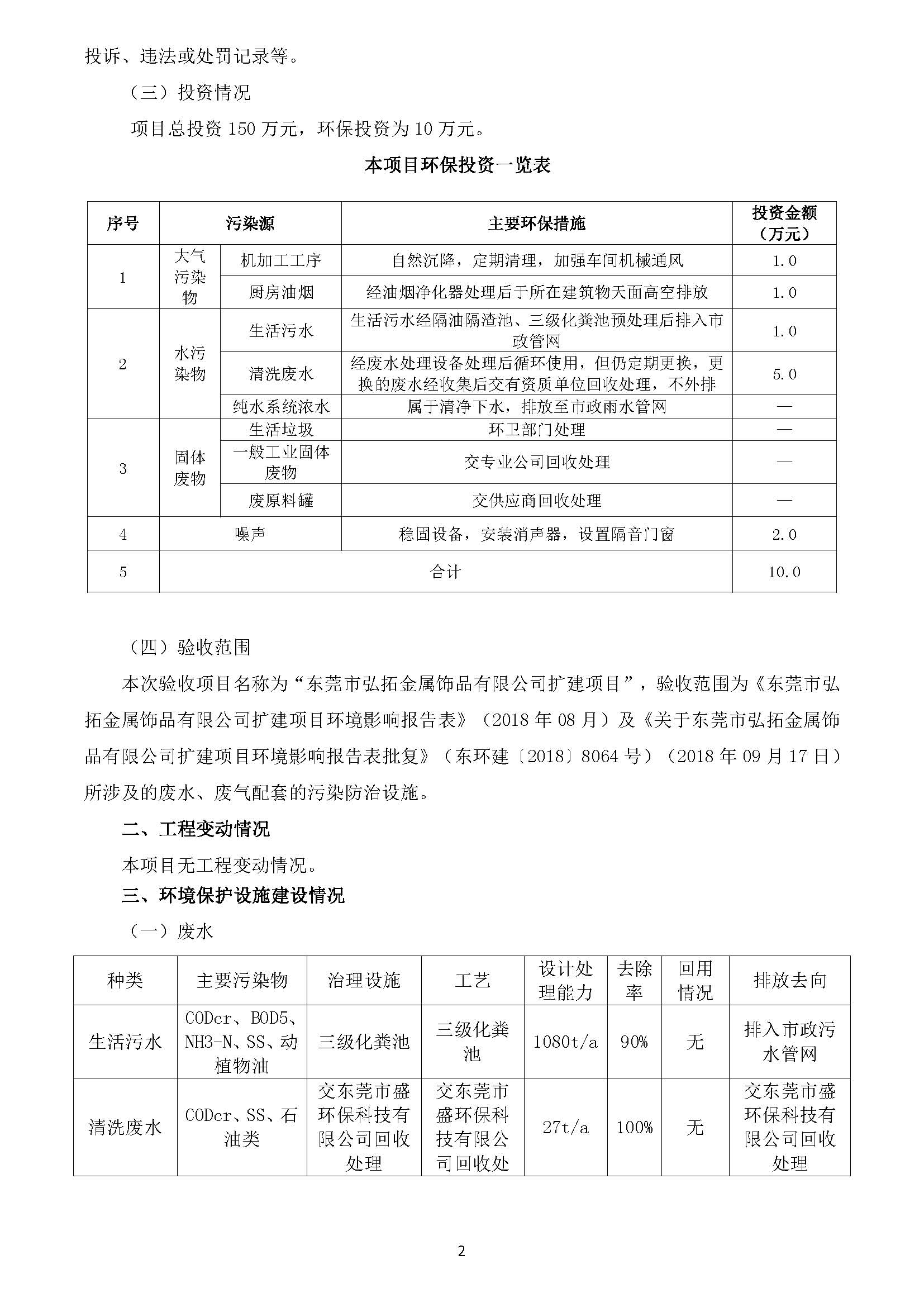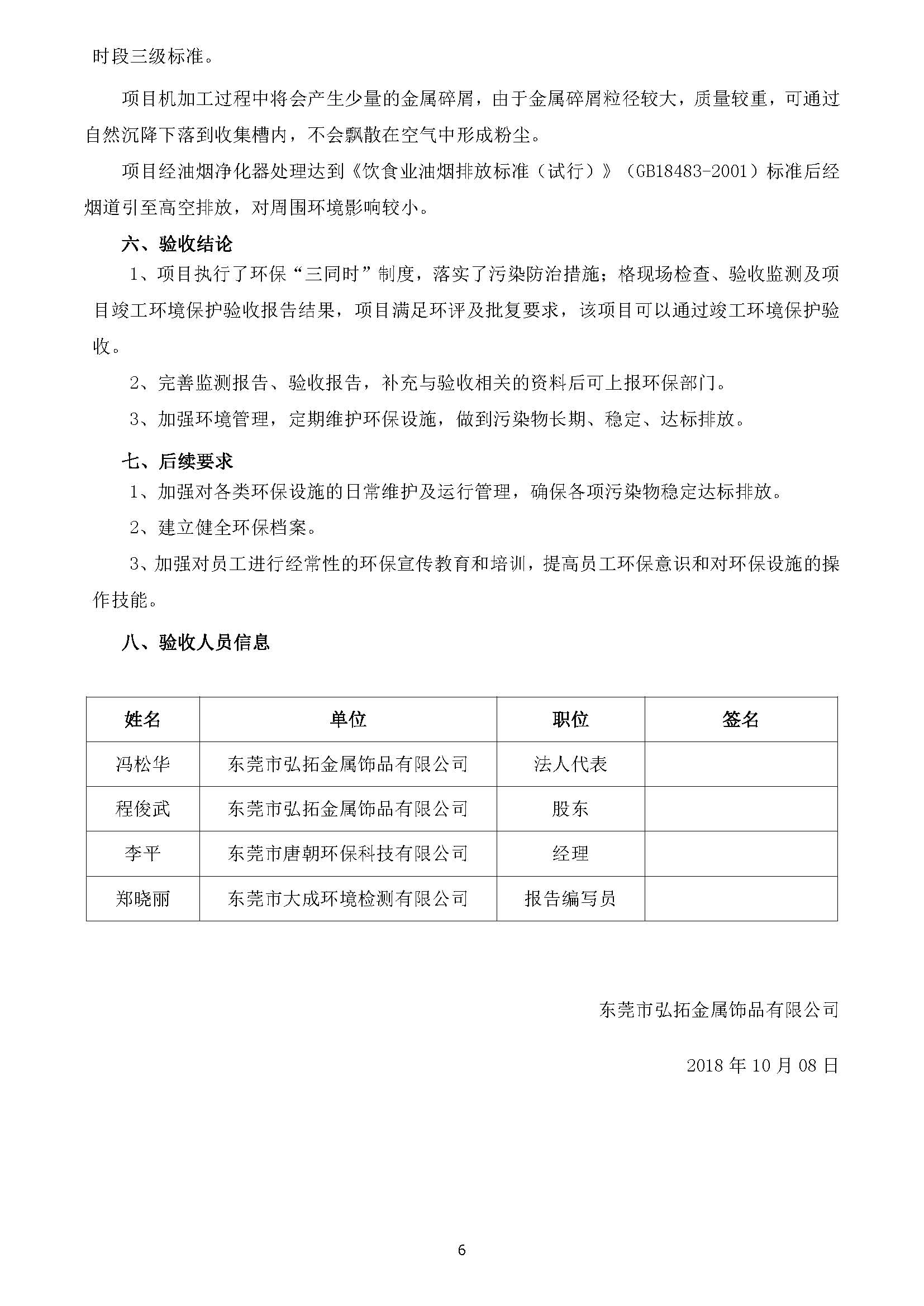 东莞市弘拓金属饰品有限公司扩建自主验收