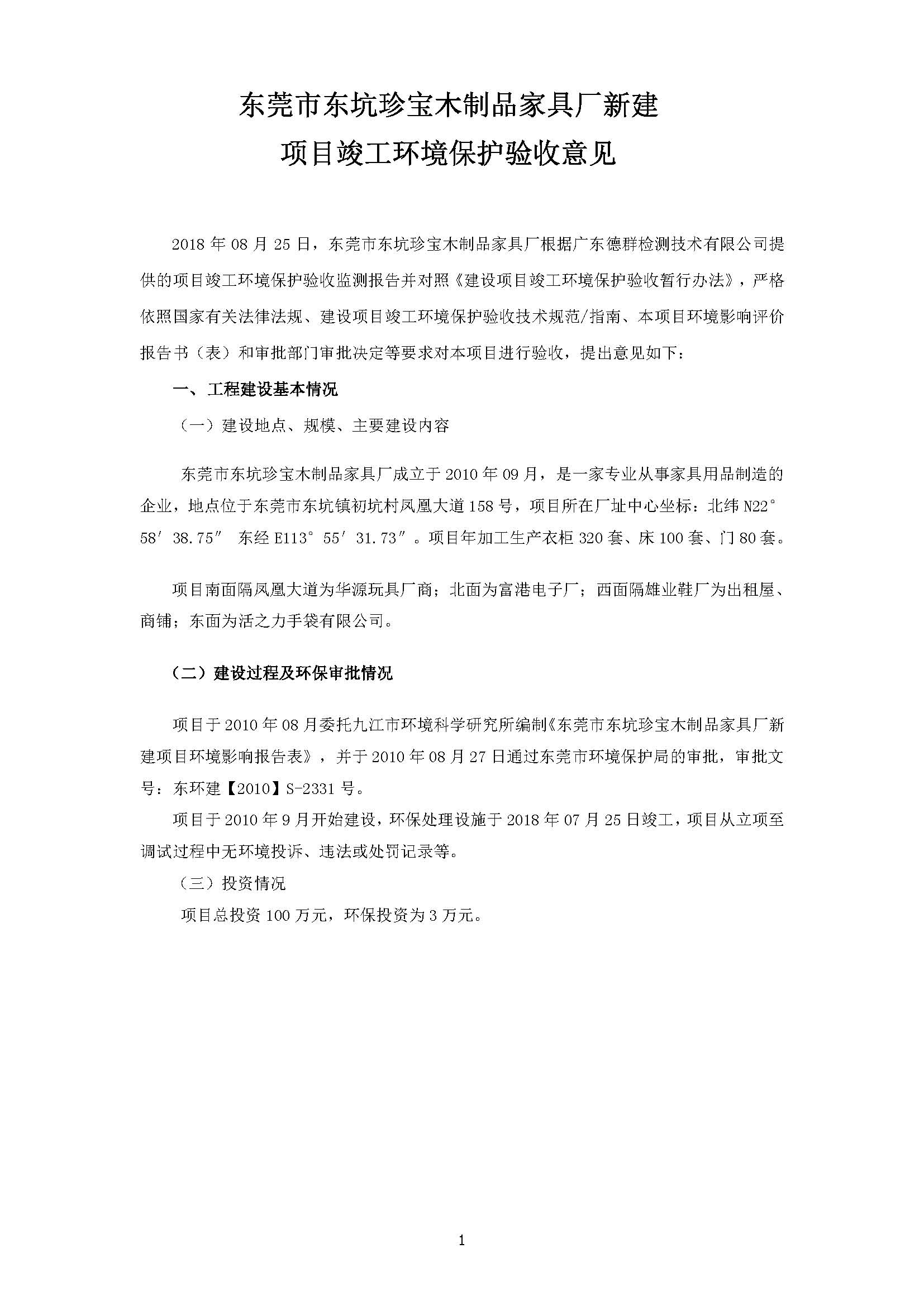 东坑珍宝木制品家具厂新建项目自主验收公示