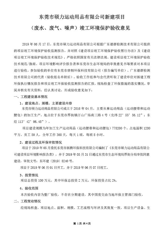 东莞市硕力运动用品有限公司(新建)自主验收公示