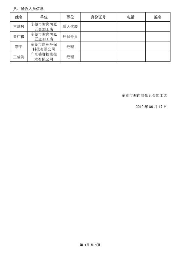 东莞市谢岗鸿豪五金加工店(新建)(一期)自主验