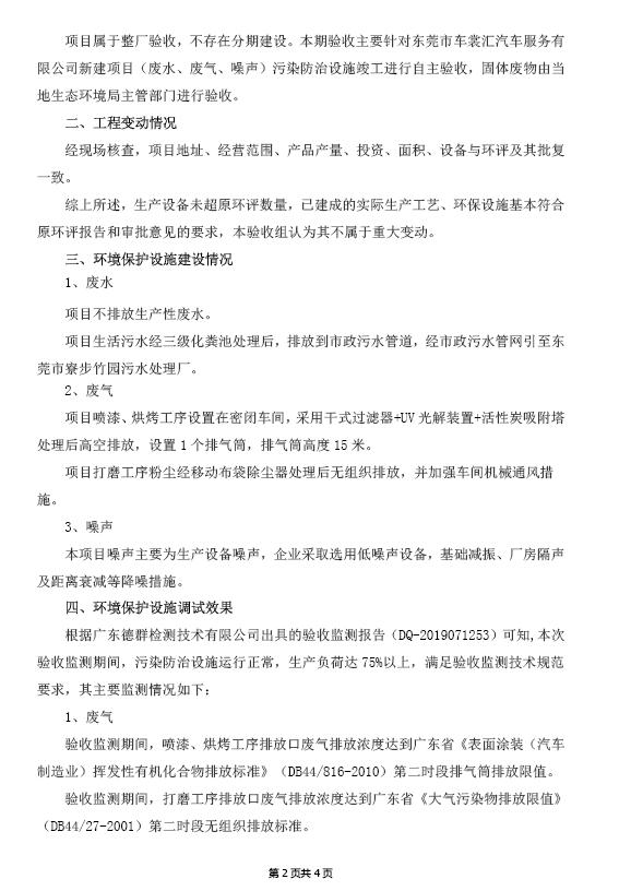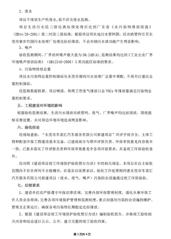东莞市车裳汇汽车服务有限公司(新建)自主验收公