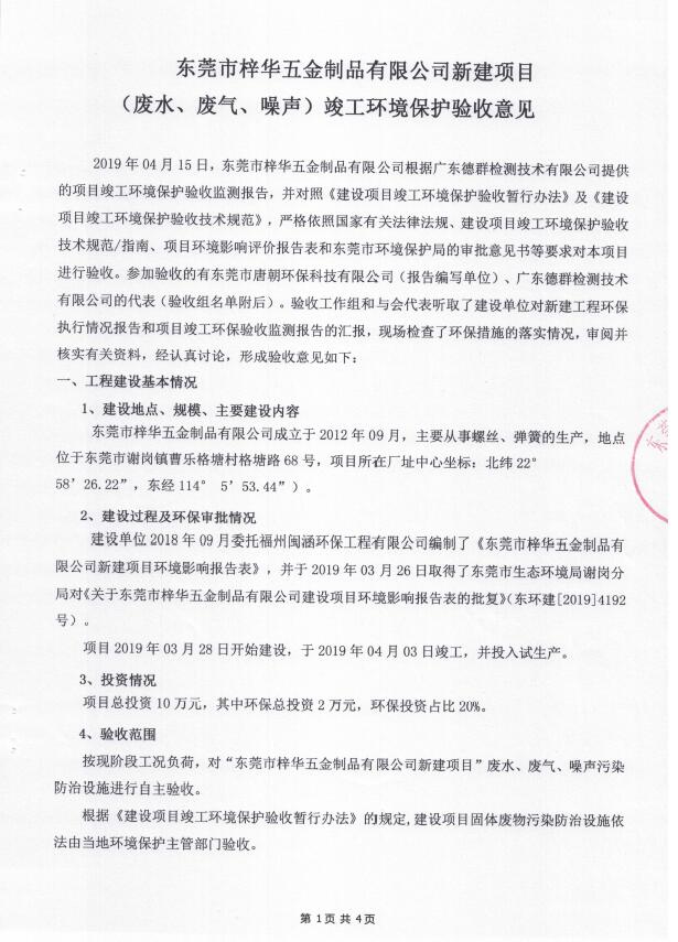 - 东莞市弘拓金属饰品有限公司新建竣工公示