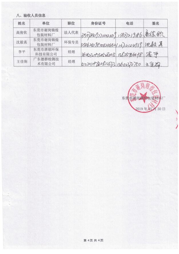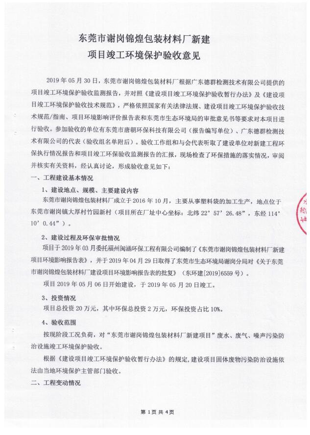 东莞市谢岗锦煌包装材料厂(新建)自主验收公示