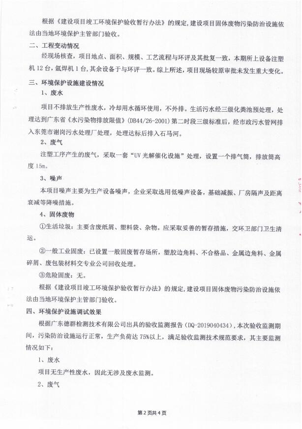 - 东莞市新盈塑胶制品有限公司(新建)竣工公示