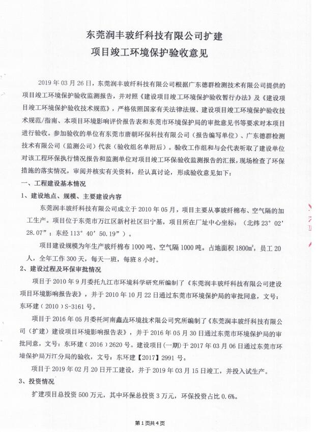东莞润丰玻纤科技有限公司建设项目(二期)自主