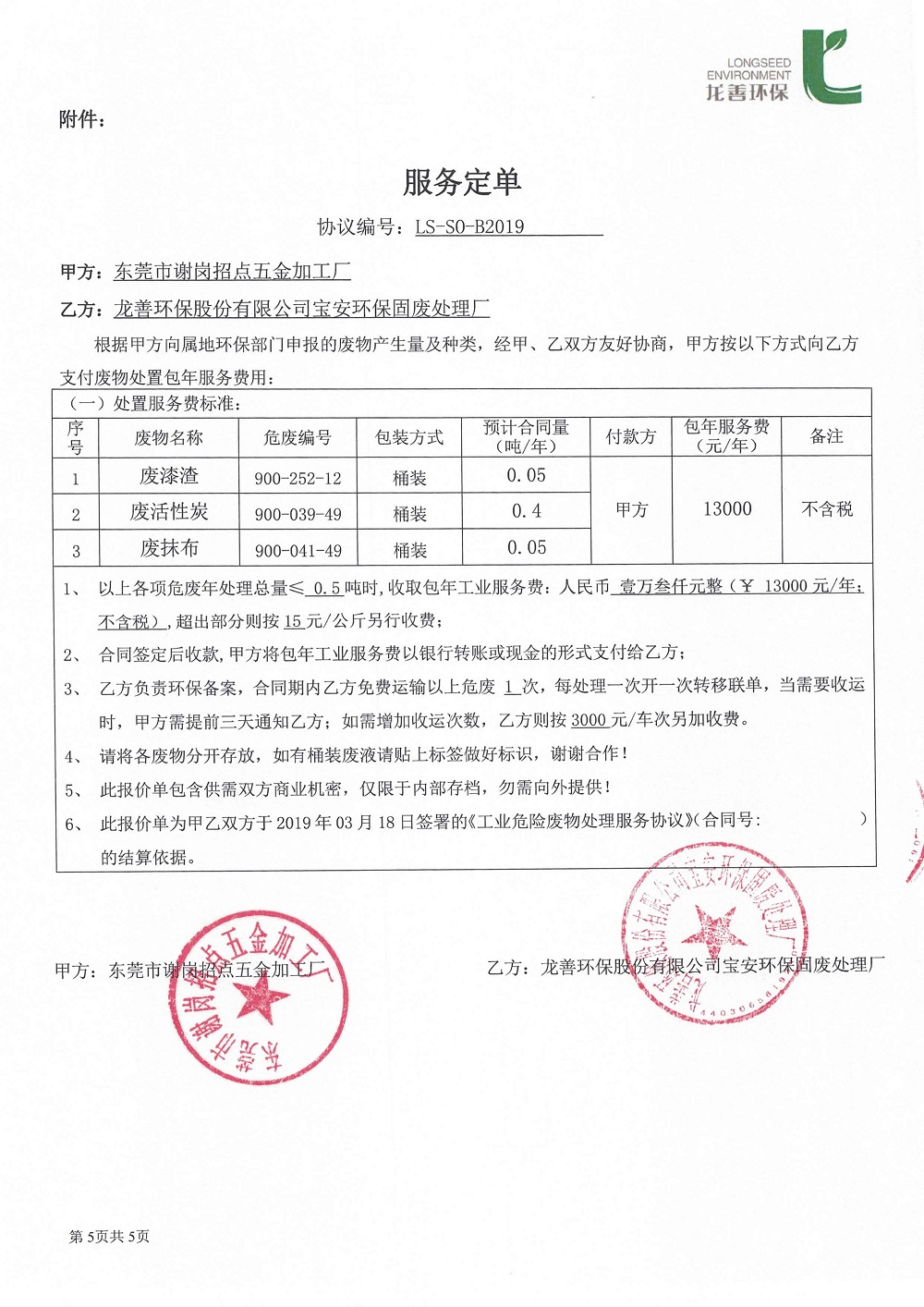 伸铭危废合同