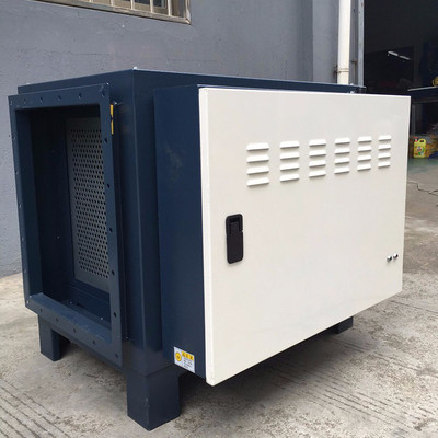 油烟净化设备也称为静电油烟净化器,油烟由风机吸入油烟净化设备,其中部分较大的油雾滴、油污颗粒在均流板上由于机械碰撞、阻留而被捕集。当气流进入高压静电场时,在高压电场的作用下,油烟气体电离,油雾荷电,大部分得以降解炭化;少部分微小油粒在吸附电场的电场力及气流作用下向电场的正负极板运动被收集在极板上并在自身重力的作用下流到集油盘,经排油通道排出,余下的微米级油雾被电场降解成二氧化碳和水,终排出洁净空气;同时在高压发生器的作用下,电场内的空气产生臭氧,除去了烟气中大部分的气味 。