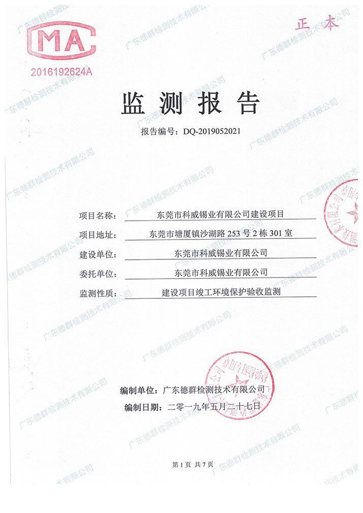 咨询:科威生活污水监测报告