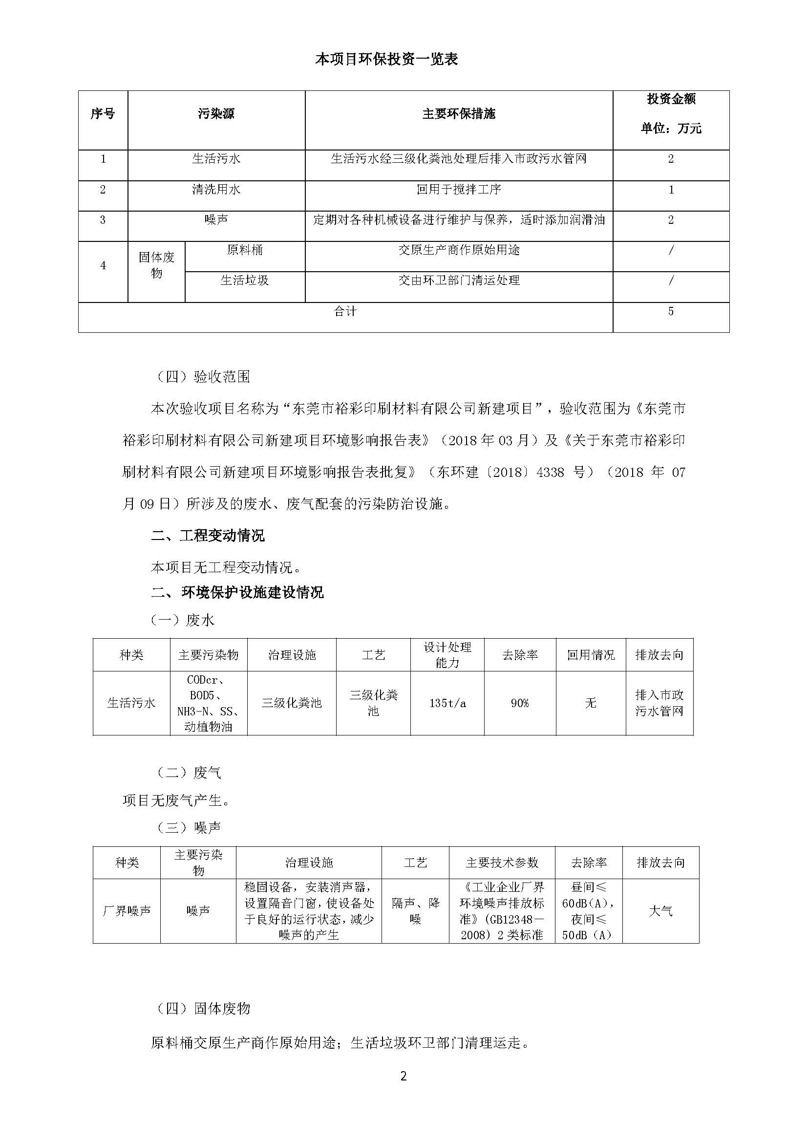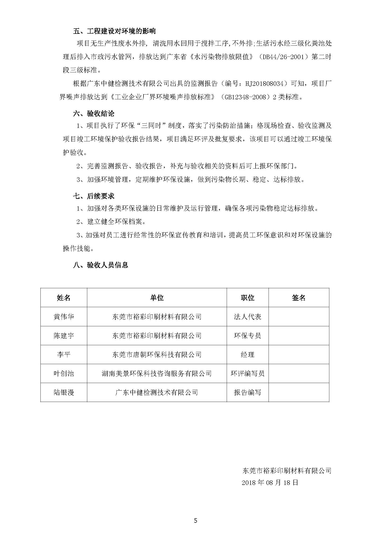 东莞市裕彩印刷材料有限公司新建项目自主验收