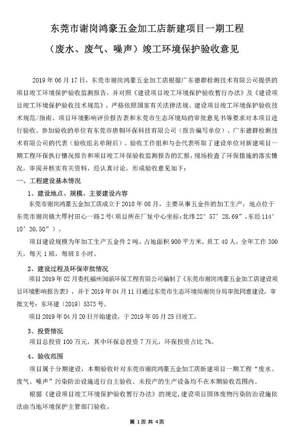东莞市谢岗鸿豪五金加工店(新建)(一期)自主验
