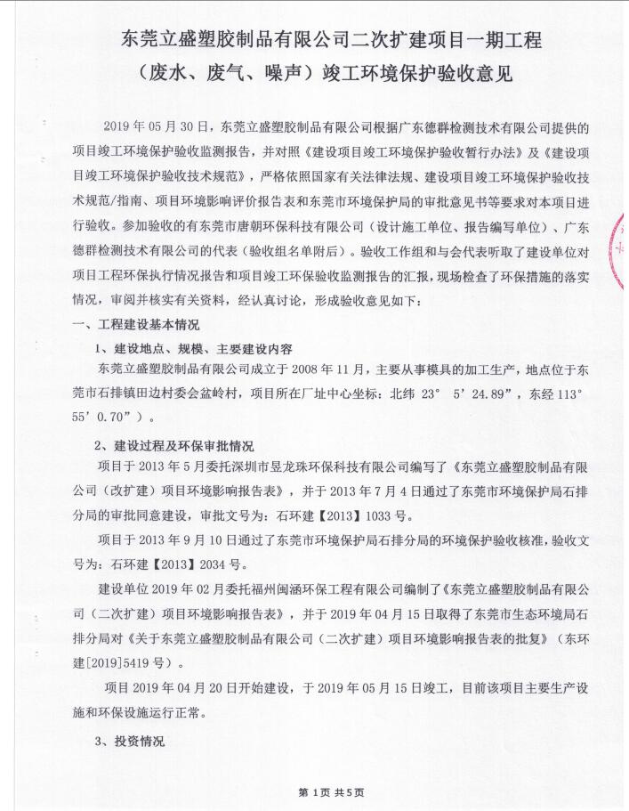 东莞立盛塑胶制品有限公司(二次扩建项目一期)
