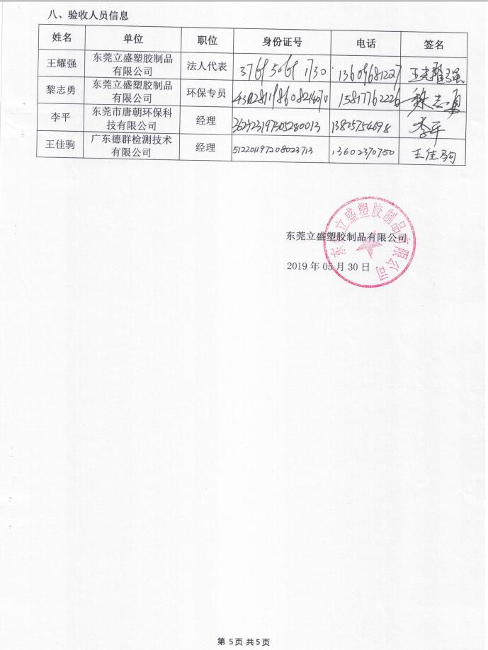 建设单位:东莞立盛塑胶制品有限公司(二次扩建项目一期)