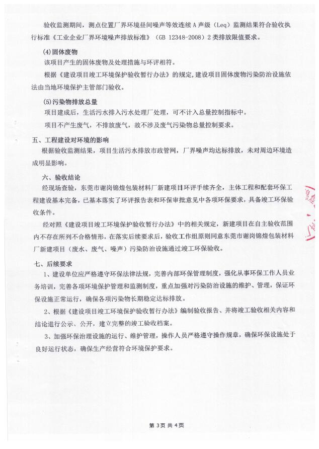 东莞市谢岗锦煌包装材料厂(新建)自主验收公示