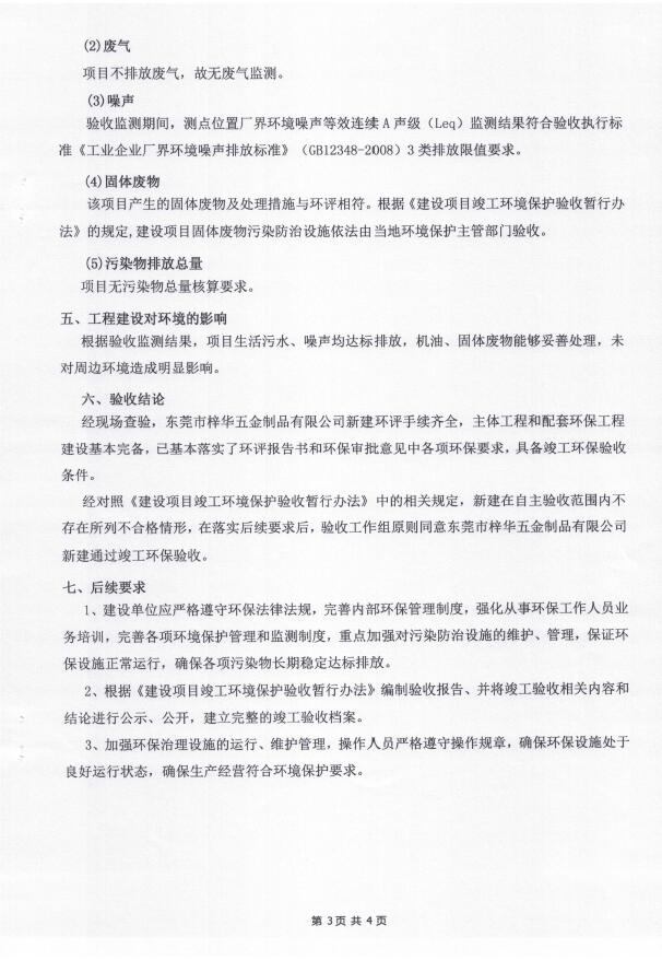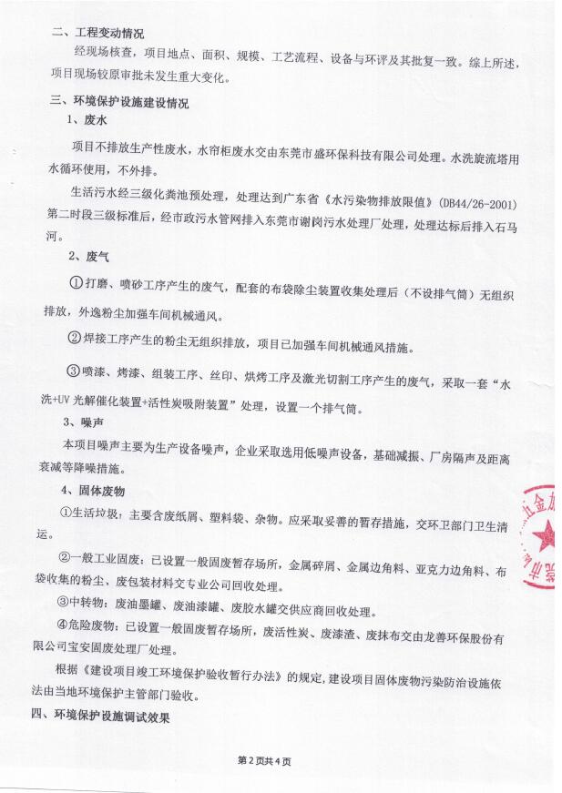 根据《国务院关于修改〈建设项目竣工环境保护管理条例〉的决定》(国务院令第682号),以及环保部《关于发布<建设项目竣工环境保护验收暂行办法>的公告》(国环规环评[2017]4号),现将东莞市谢岗招点五金加工厂(新建)项目竣工环境保护验收内容公示如下: