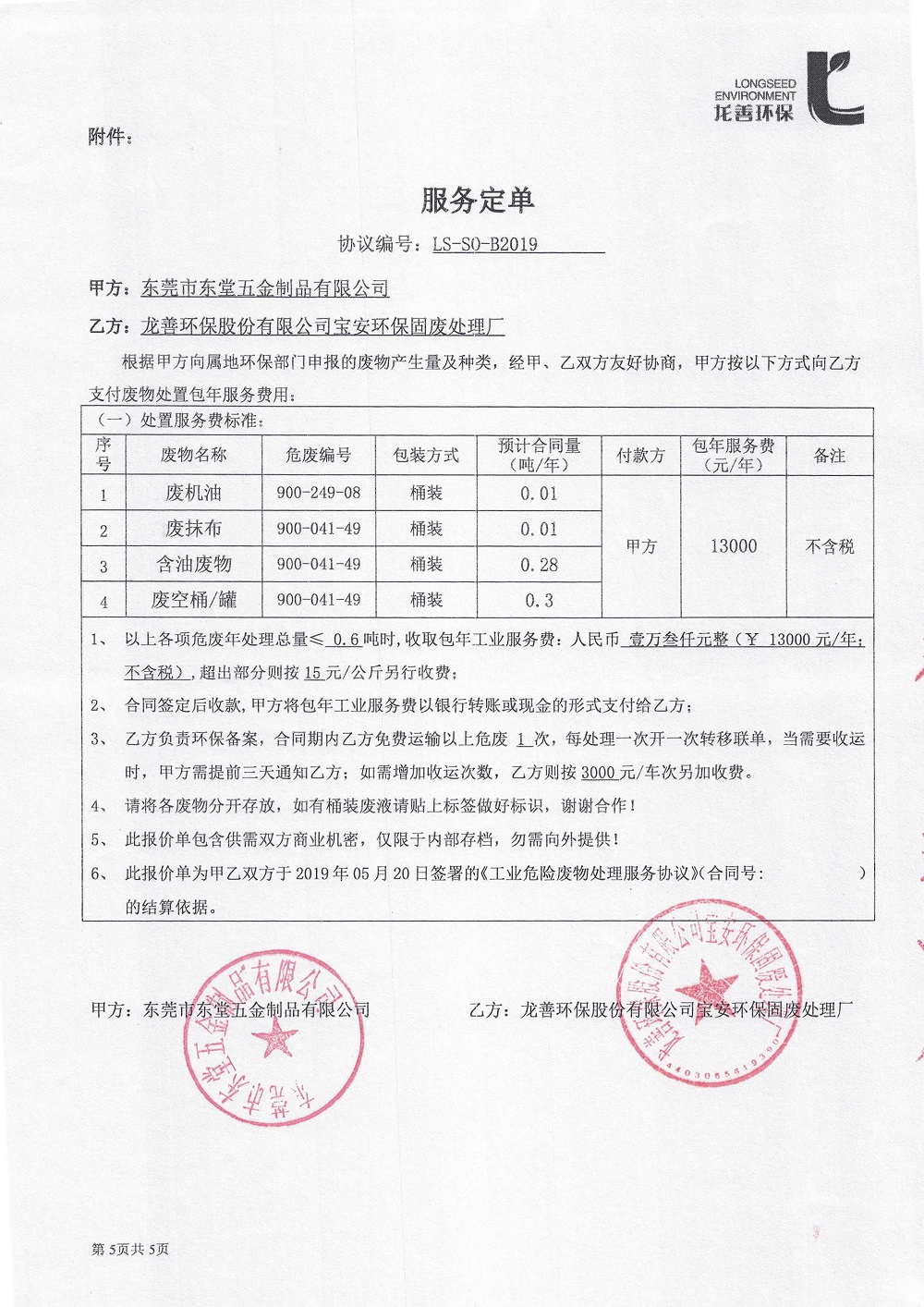 东堂危废合同